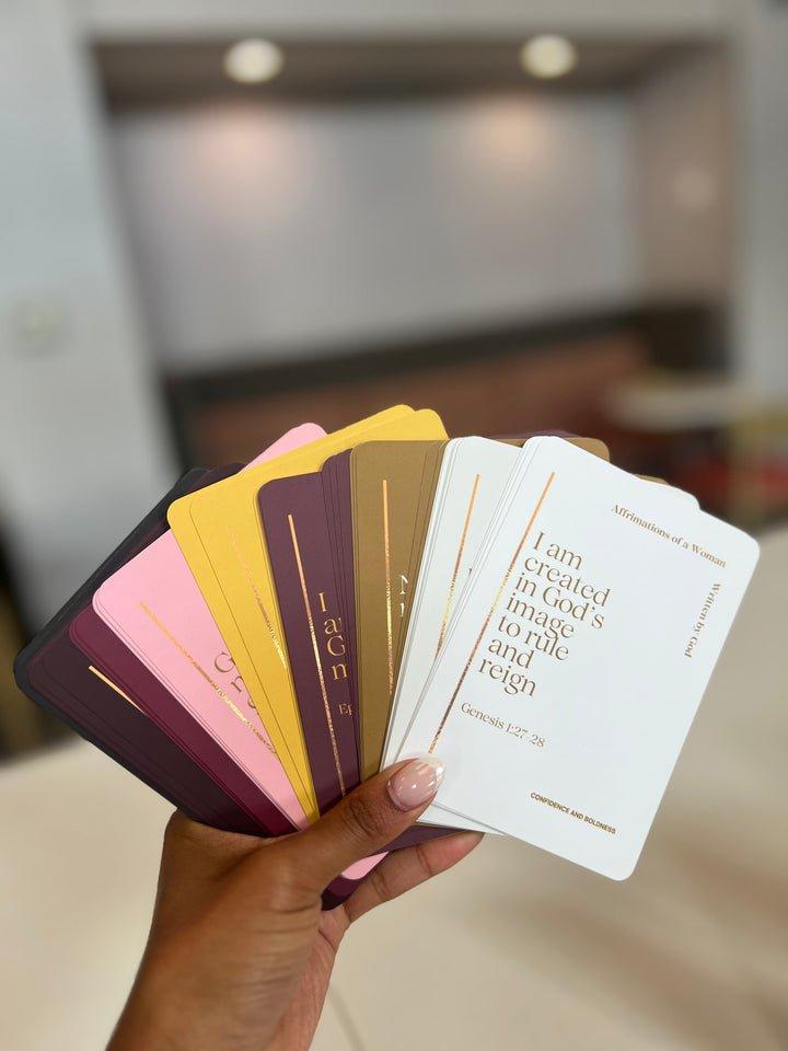 The "Affirmations of a Woman Written by God" consist of 100 powerful declarations rooted in scripture to speak life, identity, and boldness into your every day. Designed to reset your mind and remind you of God’s truth wherever you go.